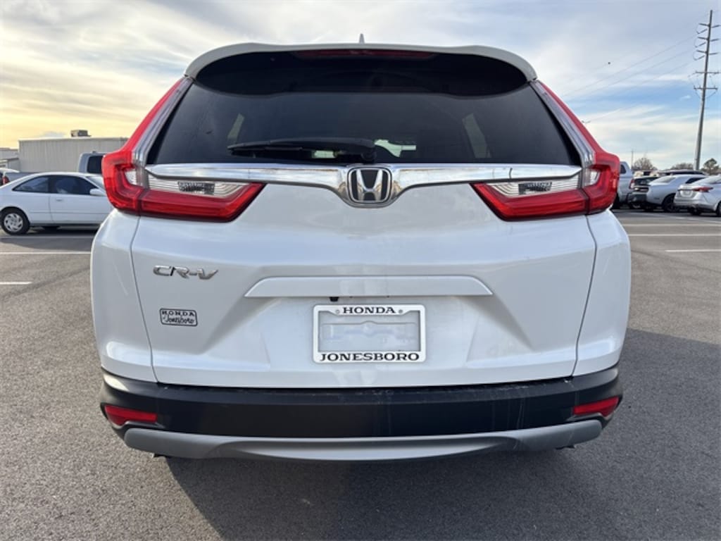 This 2019 Honda CR-V comes equipped with 18" Alloy Wheels, 4-Wheel Disc Brakes, 5.64 Axle Ratio, 8 Speakers, ABS brakes, Air Conditioning, Alloy wheels, AM/FM radio: SiriusXM, Apple CarPlay/Android Auto, Auto High-beam Headlights, Auto-dimming Rear-View mirror, Automatic temperature control, Blind Spot Information (BSI) System warning, Brake assist, Bumpers: body-color, Compass, Delay-off headlights, Driver door bin, Driver vanity mirror, Dual front impact airbags, Dual front side impact airbags, Electronic Stability Control, Exterior Parking Camera Rear, Forward collision: Collision Mitigation Braking System (CMBS) + FCW mitigation, Four wheel independent suspension, Front anti-roll bar, Front Bucket Seats, Front Center Armrest, Front dual zone A/C, Front fog lights, Front reading lights, Fully automatic headlights, Garage door transmitter: HomeLink, Heated door mirrors, Heated Front Bucket Seats, Heated front seats, Illuminated entry, Lane departure: Lane Keeping Assist System (LKAS) active, Leather Seat Trim, Leather Shift Knob, Low tire pressure warning, Memory seat, Occupant sensing airbag, Outside temperature display, Overhead airbag, Overhead console, Panic alarm, Passenger door bin, Passenger vanity mirror, Power door mirrors, Power driver seat, Power Liftgate, Power moonroof, Power passenger seat, Power steering, Power windows, Radio data system, Radio: AM/FM/SiriusXM Audio System, Rear anti-roll bar, Rear seat center armrest, Rear window defroster, Rear window wiper, Remote keyless entry, Security system, Speed control, Speed-sensing steering, Speed-Sensitive Wipers, Split folding rear seat, Spoiler, Steering wheel mounted audio controls, Tachometer, Telescoping steering wheel, Tilt steering wheel, Traction control, Trip computer, Turn signal indicator mirrors, and Variably intermittent wipers.