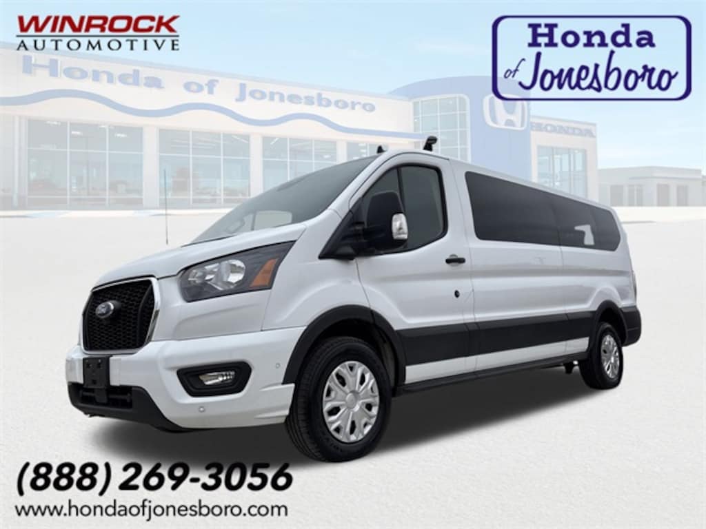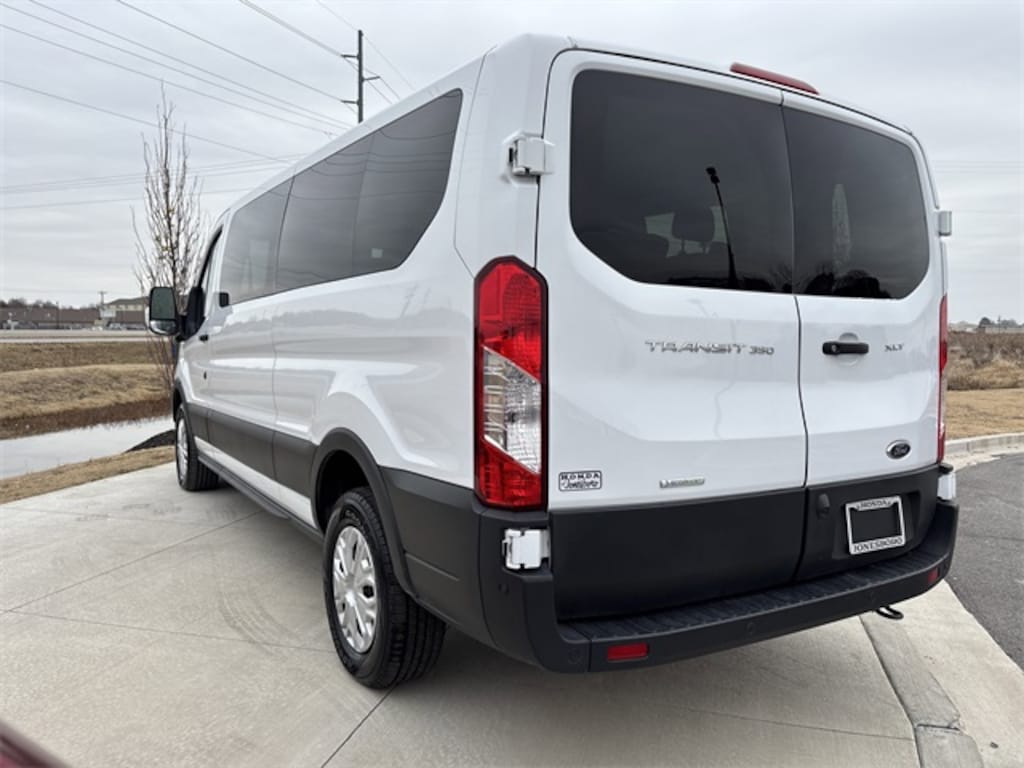 This 2023 Ford Transit-350 comes equipped with 3.73 Axle Ratio, 360-Degree Camera w/Split View, 3rd row seats: split-bench, 4-Wheel Disc Brakes, 4th-Row Bench Seat, 8 Speakers, ABS brakes, Air Conditioning, AM/FM radio, Auto High-beam Headlights, Auto Start-Stop Delete, Brake assist, Cloth Front Bucket Seats, Delay-off headlights, Driver door bin, Driver vanity mirror, Driver's Seat Mounted Armrest, Dual front impact airbags, Dual front side impact airbags, Ebony Cloth Bucket Seats, Electronic Air Temperature Control, Electronic Stability Control, Front anti-roll bar, Front Bucket Seats, Front Fog Lamps, Front License Plate Bracket, Front reading lights, Front Sensing System, Front wheel independent suspension, Fully automatic headlights, Honeycomb Mesh Grille w/Chrome Surround, Illuminated entry, Large Center Console, Low tire pressure warning, Occupant sensing airbag, Overhead airbag, Panic alarm, Passenger door bin, Passenger seat mounted armrest, Passenger vanity mirror, Power door mirrors, Power Running Boards (DISC), Power steering, Power windows, Privacy Glass, Radio: AM/FM Stereo w/SYNC 4 & Nav, Radio: AM/FM Stereo w/SYNC 4/SiriusXM w/360L/Nav, Rain sensing wipers, Rear air conditioning, Rear window defroster, Remote keyless entry, Reverse Sensing System, Side Sensing System, Steering wheel mounted audio controls, Tachometer, Telescoping steering wheel, Tilt steering wheel, Traction control, Variably intermittent wipers, and Wheels: 16" Steel w/Full Silver Cover.