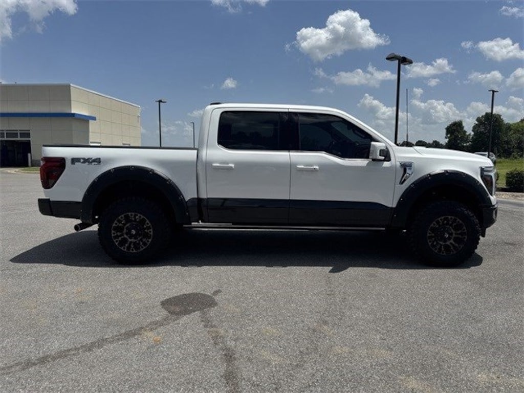 This 2024 Ford F-150 comes equipped with Equipment Group 601A High, FX4 Off-Road Package (4x4 FX4 Off-Road Bodyside Decal, Hill Descent Control, Monotube Rear Shocks, Off-Road Tuned Front Shock Absorbers, Rock Crawl Mode, and Tray Style Floor Liner), 14 Speakers, 4-Wheel Disc Brakes, ABS brakes, Adaptive suspension, Adjustable pedals, Air Conditioning, Alloy wheels, AM/FM radio: SiriusXM with 360L, Auto High-beam Headlights, Auto-dimming door mirrors, Auto-dimming Rear-View mirror, Automatic temperature control, Brake assist, Chrome wheels, Compass, Delay-off headlights, Driver door bin, Driver vanity mirror, Dual front impact airbags, Dual front side impact airbags, Electronic Locking w/3.55 Axle Ratio, Electronic Stability Control, Emergency communication system: SYNC 4 911 Assist, Front anti-roll bar, Front Bucket Seats, Front Center Armrest, Front dual zone A/C, Front fog lights, Front reading lights, Front wheel independent suspension, Fully automatic headlights, Garage door transmitter, Genuine wood dashboard insert, Heads-Up Display, Heated door mirrors, Heated front seats, Heated rear seats, Heated steering wheel, Illuminated entry, King Ranch Leather Bucket Seats, LED Sideview Mirror Spotlights, Low tire pressure warning, Max Recline Driver & Passenger Seat, Memory seat, Navigation system: Connected Navigation, Occupant sensing airbag, Outside temperature display, Overhead airbag, Overhead console, Panic alarm, Passenger door bin, Passenger vanity mirror, Pedal memory, Power door mirrors, Power driver seat, Power moonroof, Power passenger seat, Power steering, Power windows, Radio data system, Radio: B&O Unleashed Sound System by Bang & Olufsen, Rain sensing wipers, Rear reading lights, Rear seat center armrest, Rear step bumper, Rear window defroster, Remote keyless entry, Security system, Speed control, Split folding rear seat, Steering wheel mounted audio controls, SYNC 4 w/Enhanced Voice Recognition, Tachometer, Telescoping steering wheel, Tilt steering wheel, Tough Bed Spray-In Bedliner, Traction control, Trip computer, Turn signal indicator mirrors, Variably intermittent wipers, Ventilated front seats, Voltmeter, Wheel Well Liner, and Wheels: 20" Chrome-Like PVD.