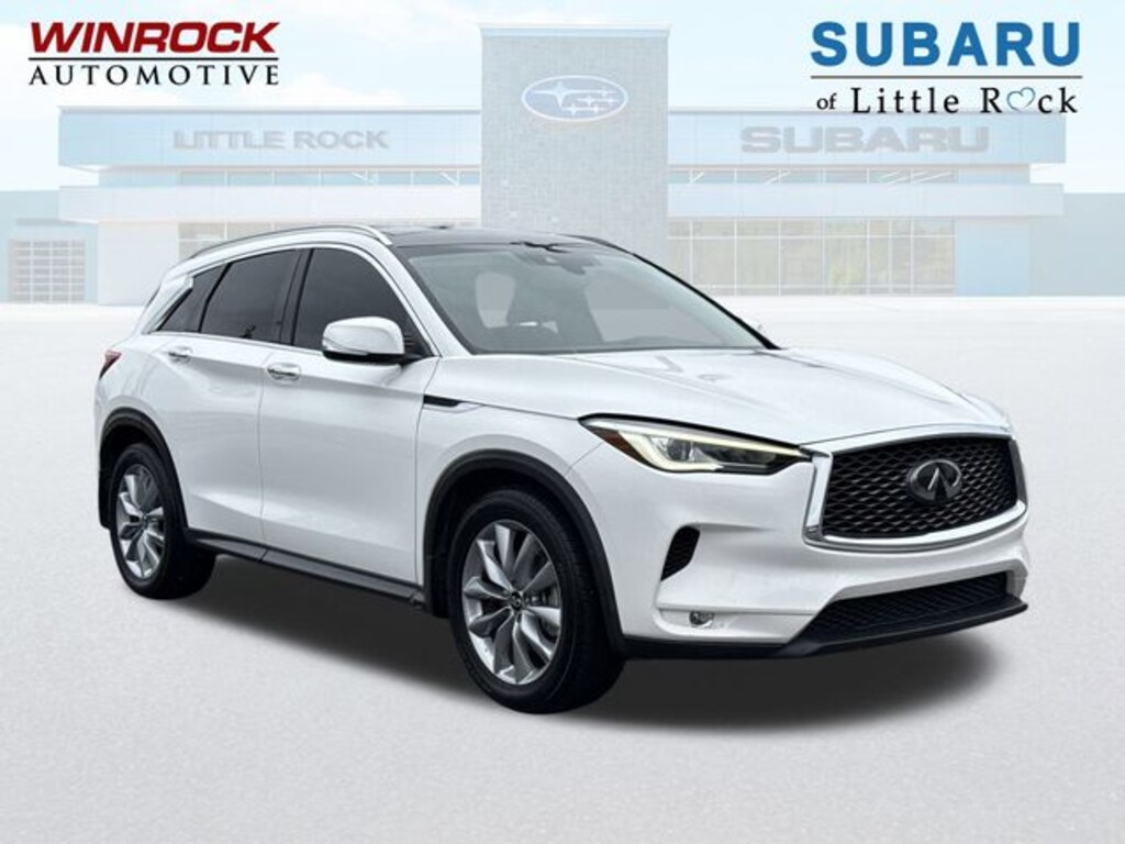 Discover the epitome of luxury and performance in this stunning 2021 INFINITI QX50 LUXE. With its striking white exterior and a host of premium features, this SUV is the perfect blend of style, comfort, and technology.
