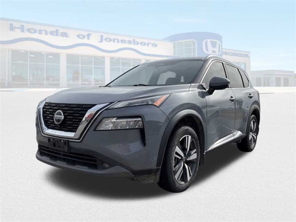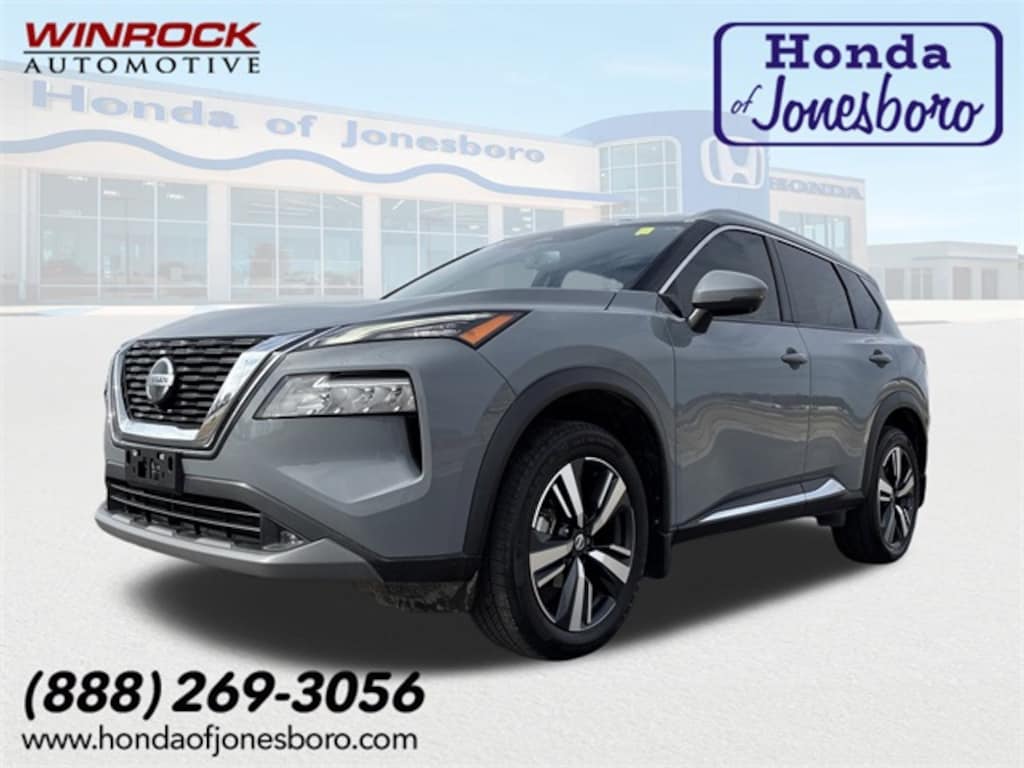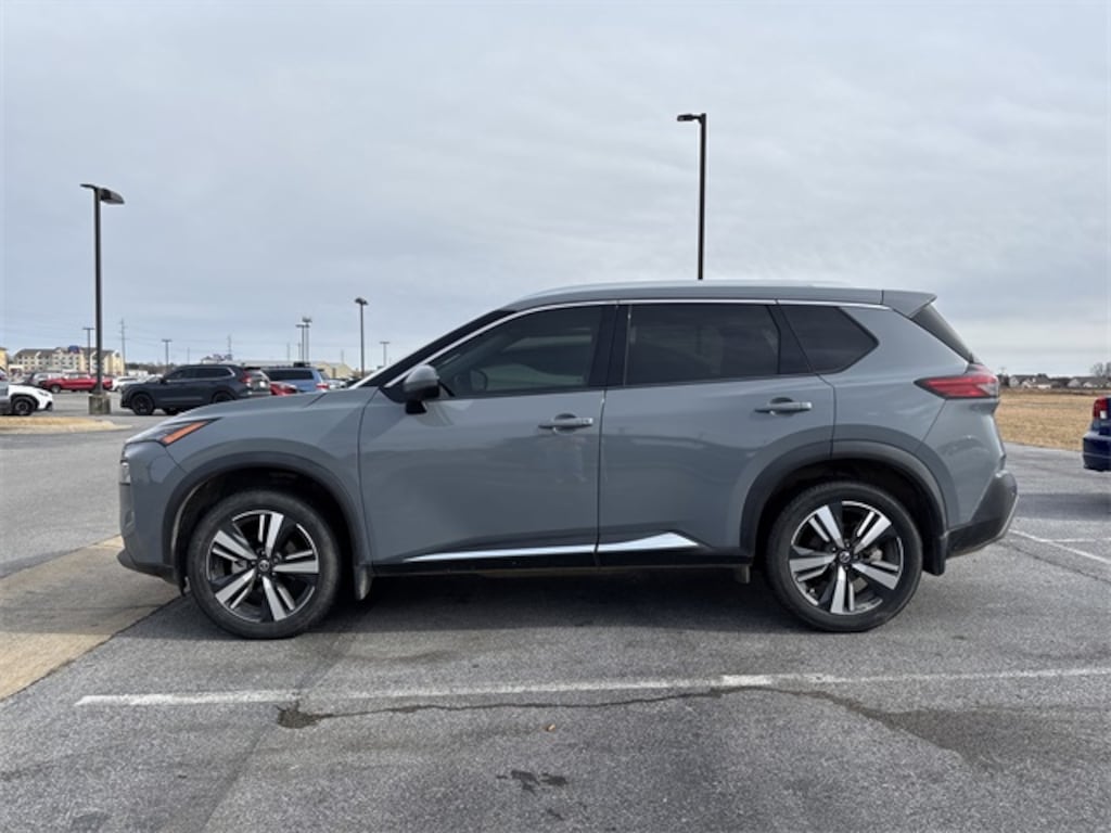 This 2021 Nissan Rogue comes equipped with 19" Aluminum Alloy Wheels, 4-Wheel Disc Brakes, 5.604 Axle Ratio, 6 Speakers, ABS brakes, Air Conditioning, Alloy wheels, AM/FM Radio, AM/FM radio, Auto High-beam Headlights, Auto-dimming Rear-View mirror, Automatic temperature control, Black Splash Guards (Set of 4), Brake assist, Bumpers: body-color, Chrome Rear Bumper Protector, Delay-off headlights, Driver door bin, Driver vanity mirror, Dual front impact airbags, Dual front side impact airbags, Electronic Stability Control, Emergency communication system: NissanConnect Services, Exterior Parking Camera Rear, First Aid Kit, Floor Mats w/2-Piece Cargo Area Protector, Four wheel independent suspension, Front anti-roll bar, Front Bucket Seats, Front Center Armrest, Front dual zone A/C, Front fog lights, Front reading lights, Fully automatic headlights, Heated door mirrors, Heated Front Bucket Seats, Heated front seats, Heated steering wheel, Illuminated entry, Interior Accent Lighting, Knee airbag, Leather steering wheel, Leather-Appointed Seat Trim, Low tire pressure warning, Memory seat, NissanConnect featuring Apple CarPlay and Android Auto, Occupant sensing airbag, Outside temperature display, Overhead airbag, Overhead console, Panic alarm, Passenger door bin, Passenger vanity mirror, Power door mirrors, Power driver seat, Power Liftgate, Power moonroof, Power passenger seat, Power steering, Power windows, Radio data system, Rear air conditioning, Rear anti-roll bar, Rear Parking Sensors, Rear seat center armrest, Rear side impact airbag, Rear window defroster, Rear window wiper, Remote keyless entry, Roof rack: rails only, Security system, Speed control, Speed-Sensitive Wipers, Split folding rear seat, Spoiler, Steering wheel mounted audio controls, Tachometer, Telescoping steering wheel, Tilt steering wheel, Traction control, Trip computer, Turn signal indicator mirrors, and Variably intermittent wipers.