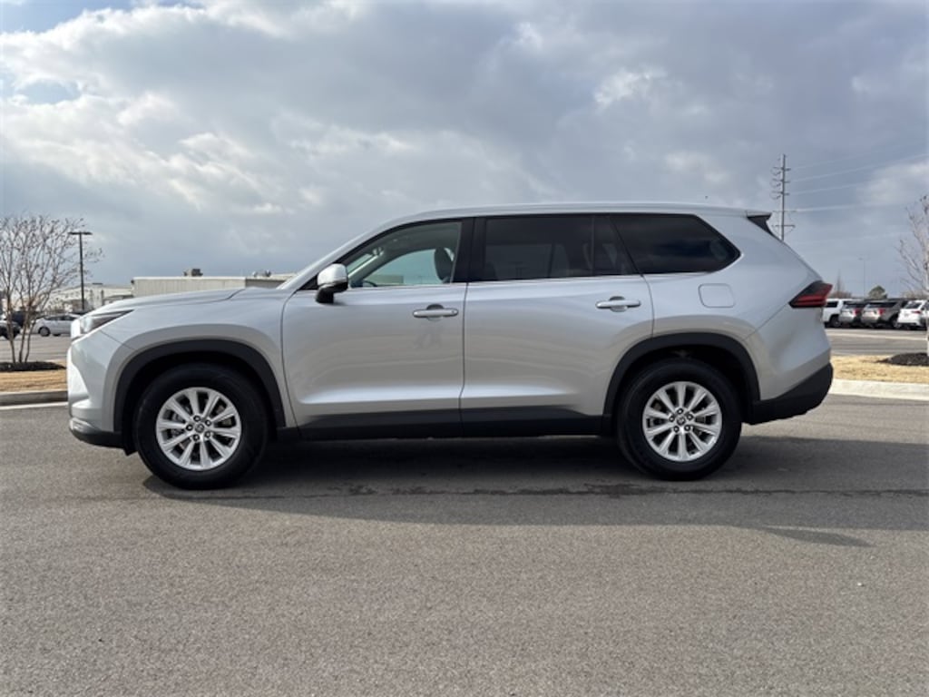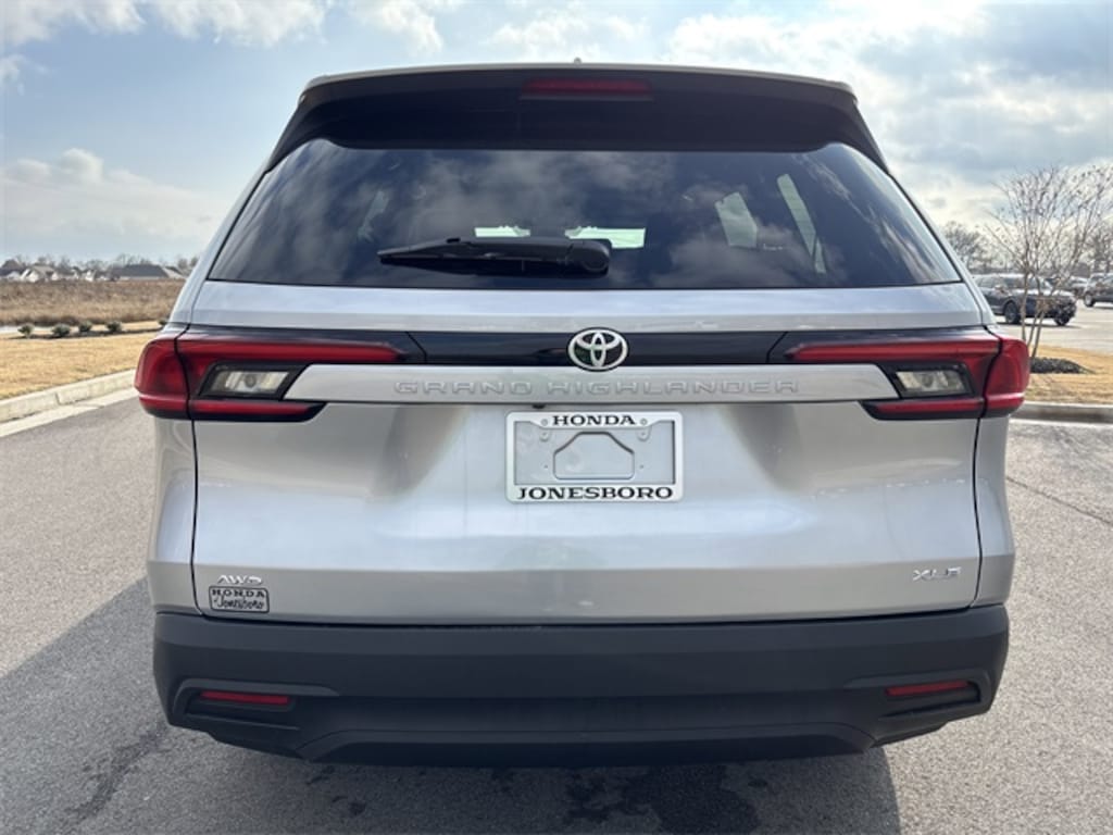 This 2025 Toyota Grand Highlander comes equipped with 3rd row seats: split-bench, 4-Wheel Disc Brakes, 6 Speakers, ABS brakes, Air Conditioning, Alloy wheels, AM/FM radio: SiriusXM, Apple CarPlay/Android Auto, Auto High-beam Headlights, Automatic temperature control, Brake assist, Bumpers: body-color, Delay-off headlights, Driver door bin, Driver vanity mirror, Dual front impact airbags, Dual front side impact airbags, Electronic Stability Control, Emergency communication system: Safety Connect (up to 10-year trial subscription), Exterior Parking Camera Rear, Fabric Seat Trim, Four wheel independent suspension, Front anti-roll bar, Front Bucket Seats, Front Center Armrest, Front dual zone A/C, Front reading lights, Front Seats, Fully automatic headlights, Heated door mirrors, Illuminated entry, Knee airbag, Leather Shift Knob, Low tire pressure warning, Navigation system: Drive Connect Cloud Navigation capable (paid subscription required), Occupant sensing airbag, Outside temperature display, Overhead airbag, Overhead console, Panic alarm, Passenger door bin, Passenger vanity mirror, Power door mirrors, Power driver seat, Power Liftgate, Power steering, Power windows, Radio: 12.3" Toyota Multimedia Audio, Rear air conditioning, Rear anti-roll bar, Rear reading lights, Rear seat center armrest, Rear window defroster, Rear window wiper, Reclining 3rd row seat, Remote keyless entry, Security system, Speed control, Speed-sensing steering, Split folding rear seat, Spoiler, Steering wheel mounted audio controls, Tachometer, Telescoping steering wheel, Tilt steering wheel, Traction control, Trip computer, Turn signal indicator mirrors, Variably intermittent wipers, and Wheels: 18" Silver Painted 5-Spoke Alloy.